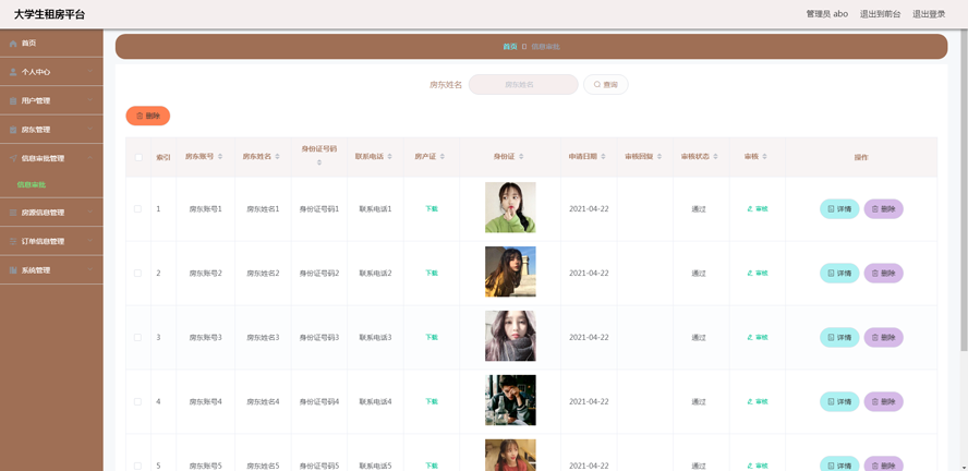 In short, the centralized management of information on the college student rental platform has many advantages such as strong confidentiality, high efficiency, large storage space, and low cost. It can reduce the cost of information management and realize the computerization of information management.